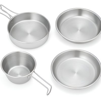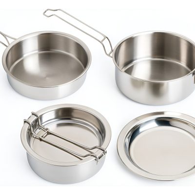 Set De Cubiertos Y Platos Metálicos Para Camping O Asado