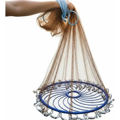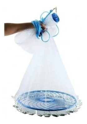 Tarraya con aro para fácil tirada. * Medidas: Diametro de apertura 3,6 mts – Alto 1,80 mts – Medida de