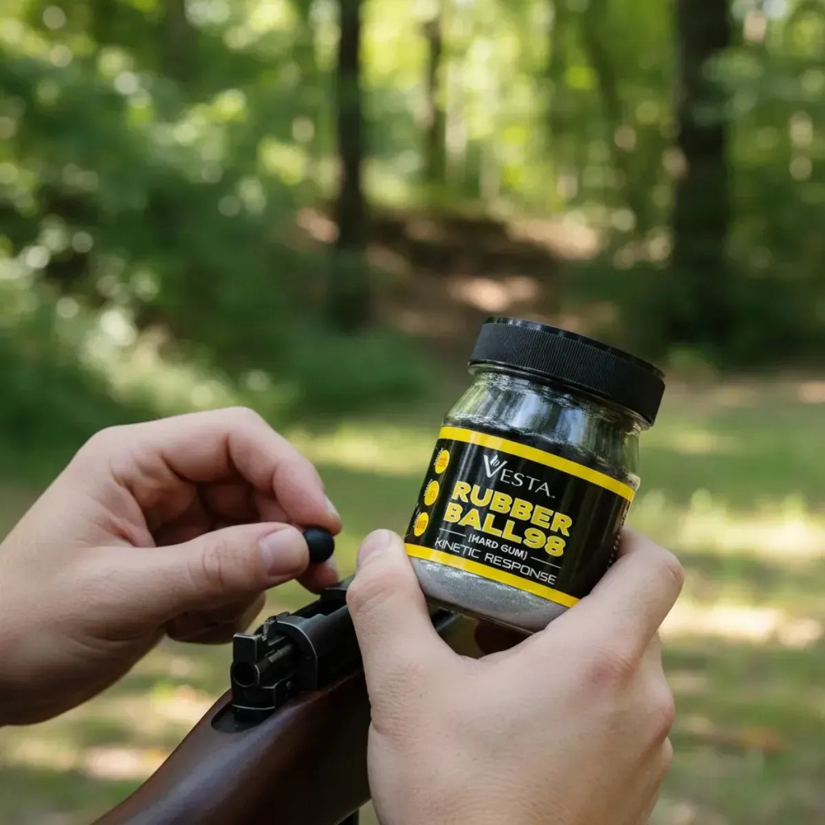 Esta munición RAM es adecuada para la defensa doméstica. Consiste en una sólida bola de goma de alta densidad. La munición se caracteriza por su máxima potencia de impacto.