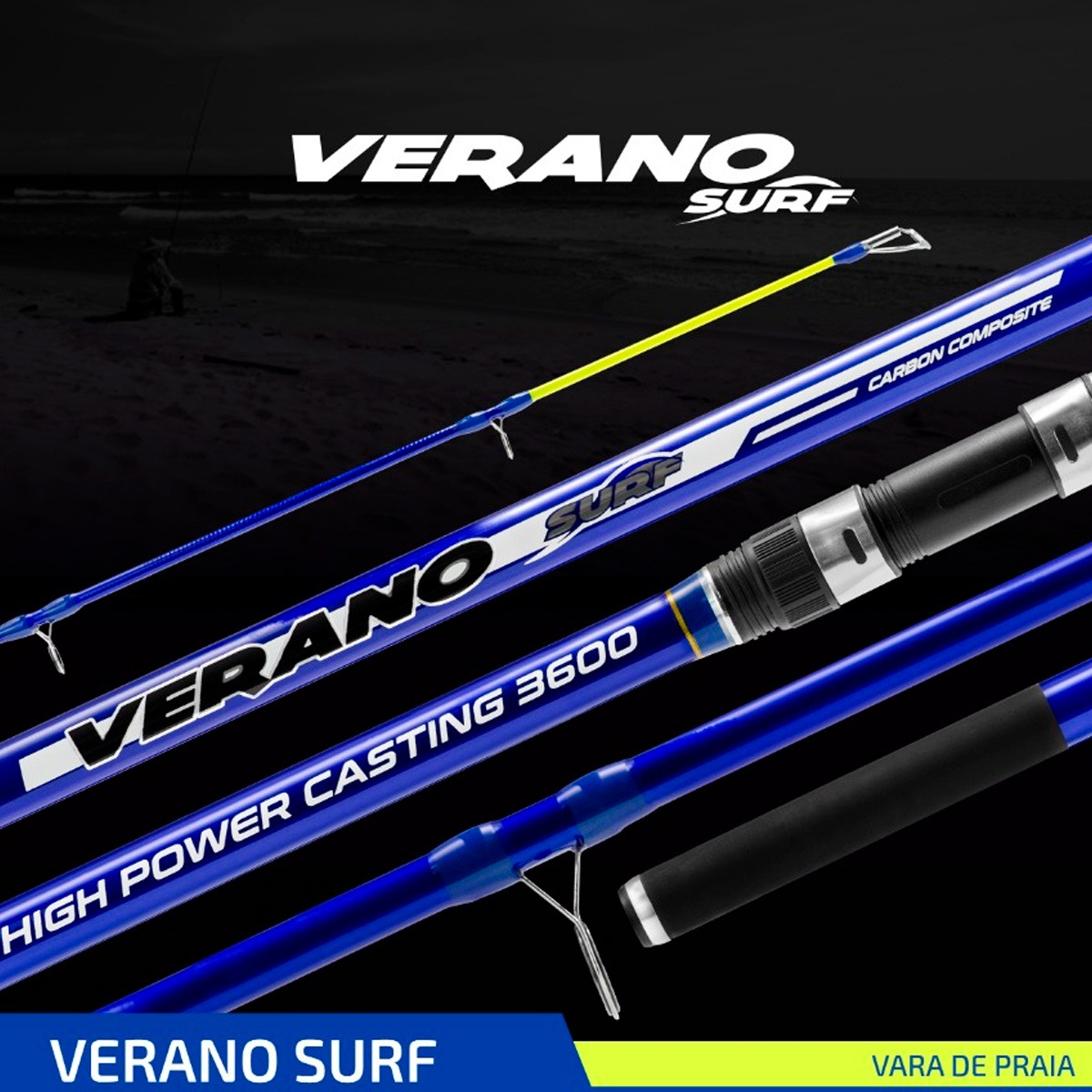 Caña Verano Surf Marine Sport Carbono 3 Tramos Lance 3.9 Mts