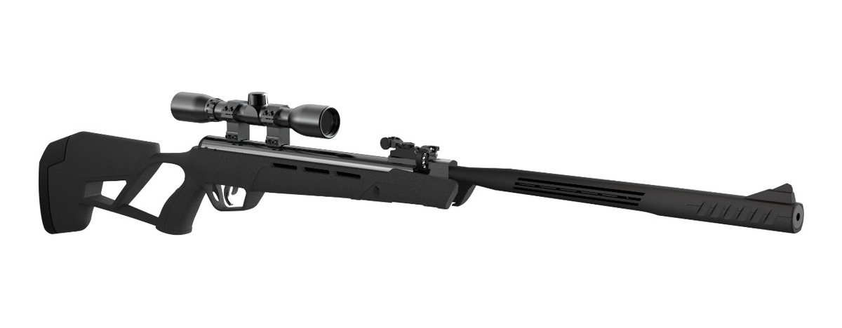 Equipado con un cañón de acero estriado, dos etapas ajustables, gatillo de ruptura limpia y riel de montaje en cola de milano