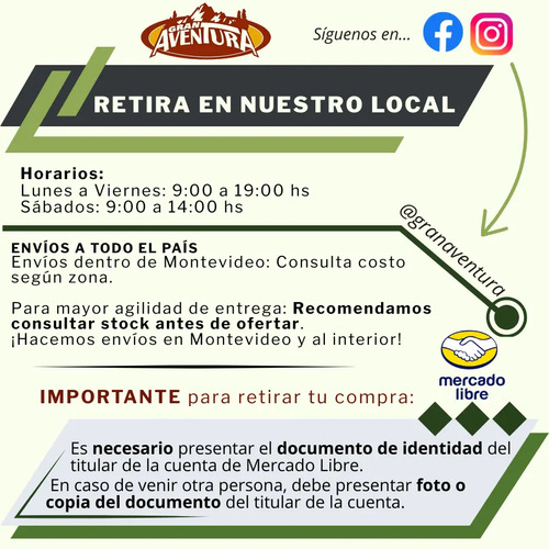 ENVÍOS: Hacemos envíos a todo el país por la agencia DAC , si utilizas la opción mercado envíos va únicamente por agencia UES
