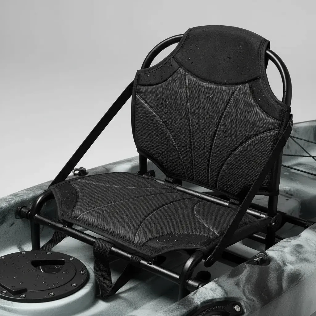 Kayak de pesca pero con un deslizamiento muy interesante gracias a sus casi 3 metros de eslora. También este kayak cuenta con una proa alta que levanta bien a la ola y un muy buen enquillado que ayuda a dirigir el rumbo. (Equipado de forma completa con 4 cañeros empotrados asiento respaldo semirrígido y remo asimétrico con paragotas para invierno).