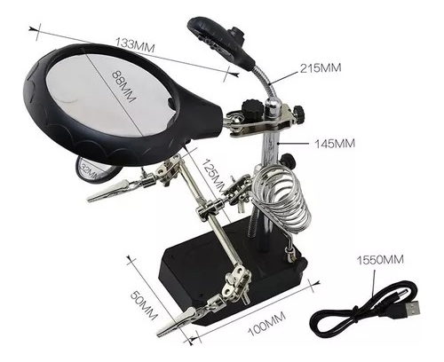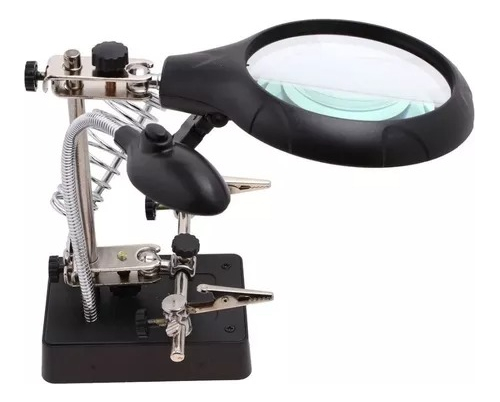Lupa De Mesa Con Luz Led Y Soporte Soldador Mas Accesorios