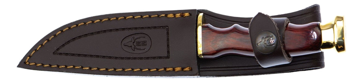 El diseño del mango, elaborado en madera prensada coral con latón, proporciona un agarre cómodo y seguro, permitiendo un uso prolongado sin fatiga. Su construcción de apertura fija asegura que el cuchillo esté siempre listo para la acción, mientras que su peso de 150 g lo hace ligero y fácil de manejar.