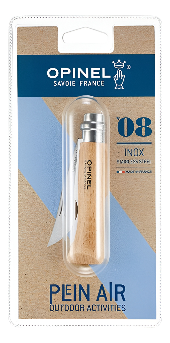 Navaja Opinel Inoxidable Cuchillo N°8 Madera Liso En Blister